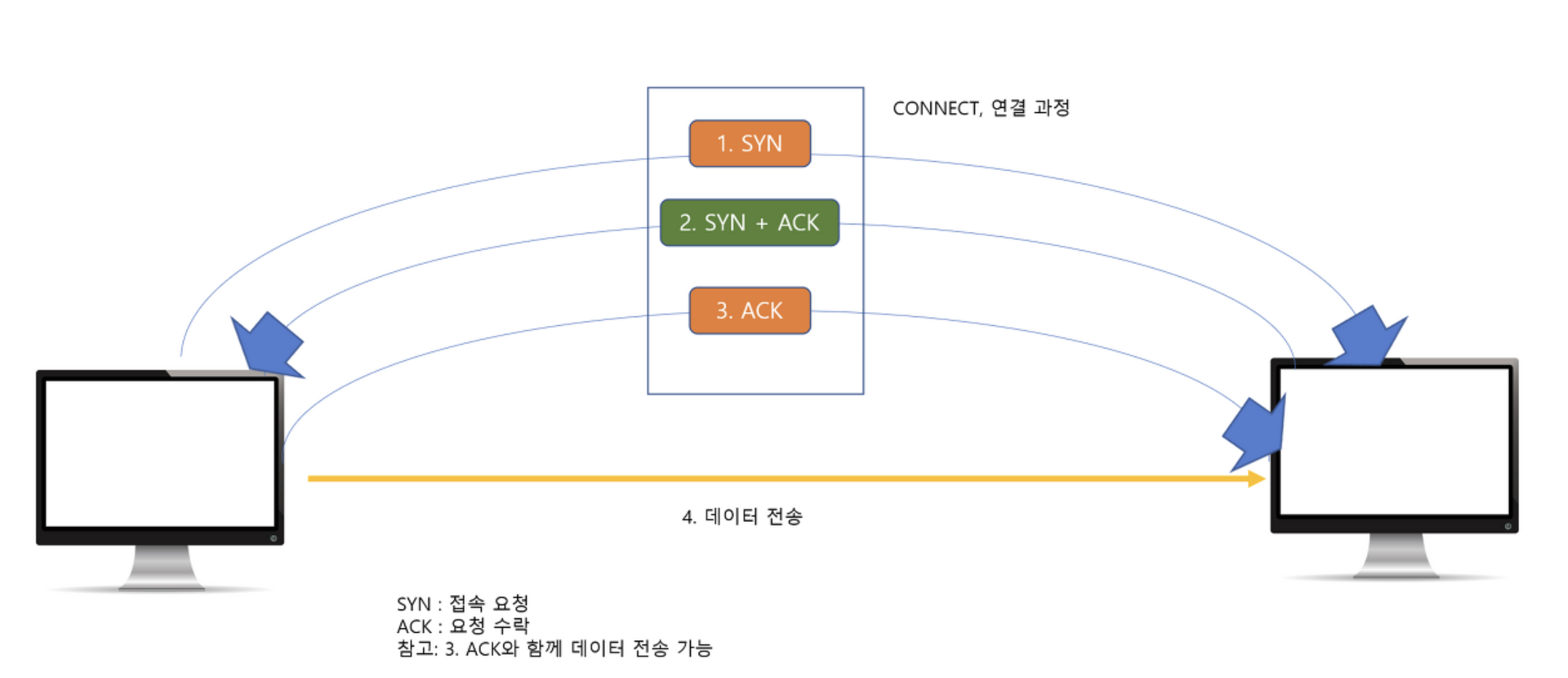 ์ด๋ ๊ฒ 3๋ฒ์ ์ฐ๊ฒฐ ๊ณผ์ ์ ํตํด์ ์๋ก๋ฅผ ์ธ์ํ๊ฒ ๋๋ฉด ๊ทธ๋ค์์ ๋ฐ์ดํฐ๋ฅผ ์ ์กํ๋ค. ๋ง์ฝ ์ค๊ฐ์ ์๋ฒ์์ ์๋ต์ด ์๊ฒ ๋๋ค๋ฉด ์ฐ๊ฒฐ์ด ๋์ง ์๊ฒ ๋๋ฉด์ ๋ฐ์ดํฐ๋ฅผ ๋ณด๋ด์ง ์๊ฒ ๋๋ฏ๋ก IP ํ๋กํ ์ฝ์ ๋น์ฐ๊ฒฐ์ฑ ๋ฌธ์ ๋ฅผ ํด๊ฒฐํ ์ ์๋ค.