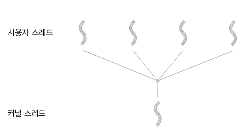 ์ฌ์ฉ์ ์ค๋ ๋๋ ์ปค๋์ด ๋ฉํฐ์ค๋ ๋๋ค ์ง์ํ์ง ์์ ๋ ์ฌ์ฉํ๋ ๋ฐฉ๋ฒ์ผ๋ก ์ด๊ธฐ์ ์ค๋ ๋ ์์คํ ์์ ์ฌ์ฉ๋์๋ค. ์ฌ์ฉ์ ์ค๋ ๋๋ ์ฌ์ฉ์ ์ค๋ ๋ ๋ผ์ด๋ธ๋ฌ๋ฆฌ๋ฅผ ์ฌ์ฉํ์ฌ ์ค๋ ๋๋ฅผ ๊ตฌํํ๋ค. ์ด๋, ์ฌ์ฉ์ ์ค๋ ๋ ๋ผ์ด๋ธ๋ฌ๋ฆฌ๋ ์ปค๋์ด ์ง์ํ๋ ์ค์ผ์ค๋ง์ด๋ ๋๊ธฐํ ๊ฐ์ ๊ธฐ๋ฅ์ ๋์ ๊ตฌํํด ์ค๋ค. ์ปค๋ ์ ์ฅ์์๋ ์ฌ์ฉ์ ์ค๋ ๋๊ฐ ๋ช ๊ฐ๋ ํ๋์ ํ๋ก์ธ์ค์ฒ๋ผ ๋ณด์ธ๋ค. ์ฌ์ฉ์ ์ค๋ ๋๋ ์ฌ์ฉ์ ํ๋ก์ธ์ค ๋ด์ ์ฌ๋ฌ ๊ฐ์ ์ค๋ ๋๊ฐ ์กด์ฌํ์ง๋ง ์ปค๋์ ์ค๋ ๋ ํ๋์ ์ฐ๊ฒฐ๋๊ธฐ ๋๋ฌธ์ 1 to N ๋ชจ๋ธ์ด๋ผ๊ณ ํ๋ค.