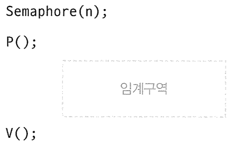 ์ธ๋งํฌ์ด๋ ์ด๊ธฐํ๊ฐ ๋๋ ํ ํ๋ก์ธ์ค๊ฐ ์๊ณ ๊ตฌ์ญ์ ์ง์ ํ๊ธฐ ์ ์ P()๋ก ์ฌ์ฉ ์ค์ด๋ผ๊ณ ํ์ํ๊ณ ์๊ณ ๊ตฌ์ญ์ ๋์ฌ ๋ V()๋ก ๋น์๋ค๊ณ ํ์ํ๋ ๋ฐฉ๋ฒ์ผ๋ก ์๊ณ ๊ตฌ์ญ์ ๋ณดํธํ๋ค.
