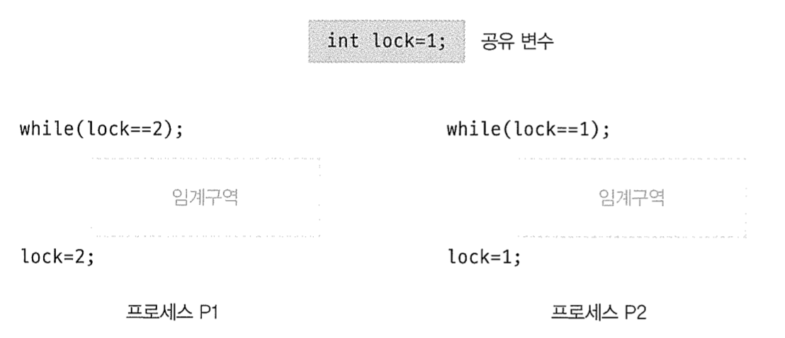 ๋ฅผ ์คํํ๊ธฐ ์ ์ ๋ฌธ๋งฅ ๊ตํ์ด ์ผ์ด๋ฌ๋ค๊ณ ์๊ฐํด ๋ณด์. ์ด๋ ๊ฒ ๋๋ฉด ์์ง lock ๋ณ์๊ฐ true๋ก ๋ฐ๋์ง ์์๊ธฐ ๋๋ฌธ์ P2๋ while(lock==true)