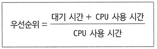 SJF ์ค์ผ์ค๋ง์์ ๋ฐ์ํ ์ ์๋ ๊ธฐ์ ์ํ๋ฅผ ํด๊ฒฐํ๊ธฐ ์ํด ๋ง๋ค์ด์ง ๋น์ ์ ํ ์๊ณ ๋ฆฌ์ฆ์ผ๋ก, ์ต๊ณ ์๋ต๋ฅ ์ฐ์ ์ค์ผ์ค๋ง์ด๋ผ๊ณ ๋ ํ๋ค. SJF์ ์ค์ผ์ค๋ง์ ์ฐ์ ์์ ํ๋จ ๊ธฐ์ค์ด ํ๋ก์ธ์ค์ ์คํ ์๊ฐ์ด์๋ค๋ฉด, HRN์ ๋๊ธฐ ์๊ฐ๊ณผ CPU ์ฌ์ฉ ์๊ฐ, ์ฆ ์คํ ์๊ฐ์ ๊ณ ๋ คํ์ฌ ์ค์ผ์ค๋งํ๋ ๋ฐฉ์์ด๋ค. ๋ค์์ HRN ์ค์ผ์ค๋ง์์ ์ฐ์ ์์๋ฅผ ์ ํ๋ ๊ธฐ์ค์ด๋ค.