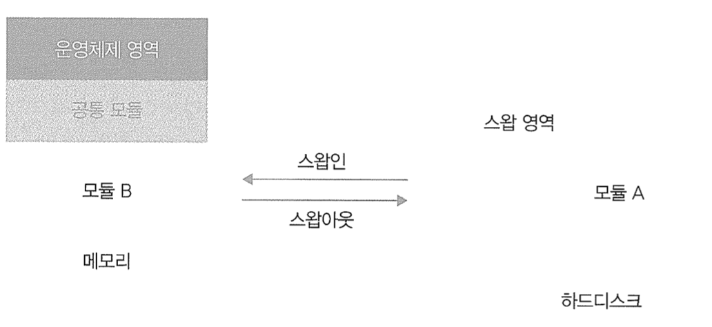 ๋ฉ๋ชจ๋ฆฌ ์ค๋ฒ๋ ์ด๋ฅผ ์ฌ์ฉํ๋ฉด ๋ง์ฝ ๊ณต๊ฐ์ด ๋ค ์ฐฌ ๋ฉ๋ชจ๋ฆฌ์ ๋ชจ๋ B๋ฅผ ๊ฐ์ ธ์ฌ ๋ ๋จผ์ ๋ฉ๋ชจ๋ฆฌ์ ์ฌ๋ผ์จ ๋ชจ๋ A๋ฅผ ์ด๋๊ฐ์ ๋ณด๊ดํด์ผ ํ๋ค. ์ด์ฒ๋ผ ๋ฉ๋ชจ๋ฆฌ์ ๊ณต๊ฐ์ด ๋ชจ์๋ผ์ ์ซ๊ฒจ๋ ํ๋ก์ธ์ค๋ฅผ ์ ์ฅ์ฅ์น์ ํน๋ณํ ๊ณต๊ฐ์ ๋ชจ์๋๋ ์์ญ์ ์ค์ ์์ญ(Swap Area)๋ผ๊ณ ํ๋ค. ์ฐธ๊ณ ๋ก ์ด๋ ๊ฒ ํ๋ก์ธ์ค๊ฐ ์ค์ ์์ญ์ ์๋ ์ํ๋ฅผ ๋ณด๋ฅ ์ํ๋ผ๊ณ ํ๋ค. ์ค์ ์์ญ์์ ๋ฉ๋ชจ๋ฆฌ๋ก ๋ฐ์ดํฐ๋ฅผ ๊ฐ์ ธ์ค๋ ์์