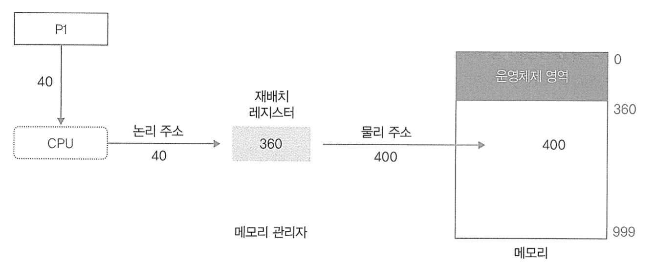์ค์ํ ๊ฒ์ ์ค์ ๋ก๋ ๋ฌผ๋ฆฌ ๋ฉ๋ชจ๋ฆฌ, ์ฆ ์ปดํจํฐ ๋ด์ ๋ฌผ๋ฆฌ์ ์ผ๋ก ์ค์น๋ ๋ฉ์ธ ๋ฉ๋ชจ๋ฆฌ์ 40๋ฒ์ง์ A๊ฐ ๋ค์ด๊ฐ๋ ๊ฒ์ด ์๋๋ผ๋ ์ ์ด๋ค. ์ ์ฝ๋๋ฅผ ์คํํ๋ ํ๋ก๊ทธ๋จ์ด ๋ฉ๋ชจ๋ฆฌ์ ์ฌ๋ผ์ค๋ฉด ์ด ํ๋ก๊ทธ๋จ์ ์ํ ๋ฉ๋ชจ๋ฆฌ ๊ณต๊ฐ์ ๋ฌผ๋ฆฌ ๋ฉ๋ชจ๋ฆฌ์ ์ด์์ฒด์ ์์ญ์ ์ ์ธํ ๋น ๊ณต๊ฐ์ ๋ฐฐ์น๋๋ค. ์ด๋, ์ด ํ๋ก๊ทธ๋จ์ ๋ฌผ๋ฆฌ ๋ฉ๋ชจ๋ฆฌ์ ์์ ์ฃผ์๋ 500๋ฒ์ง ์ผ ์๋ ์๊ณ 600๋ฒ์ง์ผ ์๋ ์๋ค. ์ด๋ ํ๋ก๊ทธ๋จ์ด ์คํ๋ ๋๋ง๋ค ์์ํ๋ ๋ฌผ๋ฆฌ ์ฃผ์๊ฐ ๋งค๋ฒ ๋ฐ๋๋ค๋ ๊ฒ์ ์๋ฏธํ๋ค.