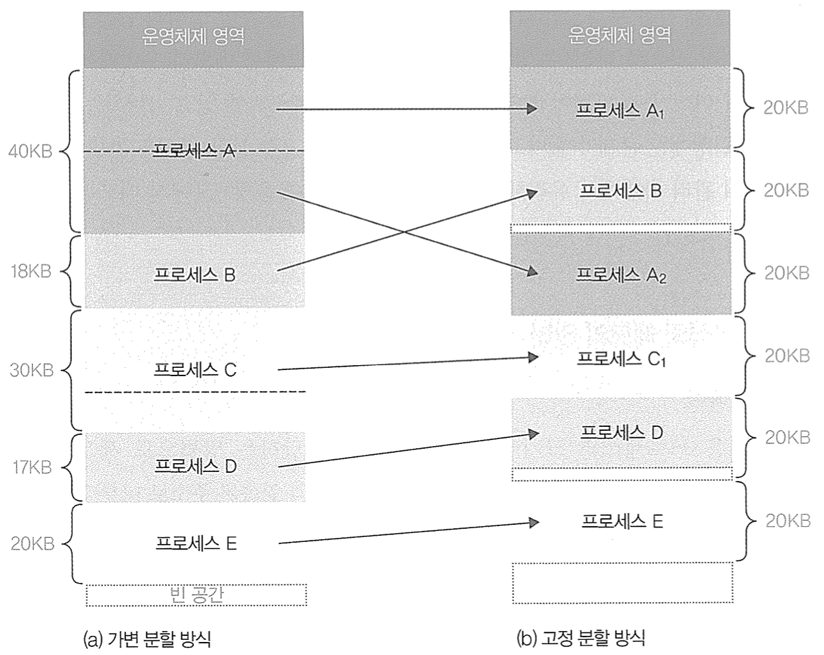 ๋จ์ผ ํ๋ก๊ทธ๋๋ฐ ํ๊ฒฝ์ด์๋ ๊ณผ๊ฑฐ์ ๋ฌ๋ฆฌ ํ๋์ ์ด์์ฒด์ ๋ ๋ฉํฐํ๋ก๊ทธ๋๋ฐ ํ๊ฒฝ, ์ฆ ํ ๋ฒ์ ์ฌ๋ฌ ํ๋ก์ธ์ค๊ฐ ์คํ๋๋ ๊ตฌ์กฐ์ ๋ฉ๋ชจ๋ฆฌ ๋ฌธ์ ๋ฅผ ํด๊ฒฐํด์ผ ํ๋ค. ๊ฐ ํ๋ก์ธ์ค๋ค์ ํฌ๊ธฐ๊ฐ ๋ฌ๋ผ ํ๋ก์ธ์ค๋ง๋ค ๋ฉ๋ชจ๋ฆฌ๋ฅผ ์ด๋ป๊ฒ ๋๋์ด ์ฌ์ฉํ ๊ฒ์ธ์ง๊ฐ ๊ฐ์ฅ ํฐ ๋ฌธ์ ์ด๋ค.