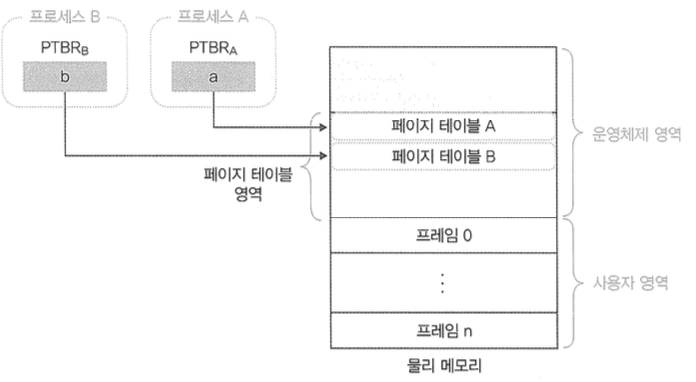 ์ด๋ธ ๊ธฐ์ค ๋ ์ง์คํฐ(Page Table Base Register)๋ผ๊ณ ํ๋ค. ์ด๋, PTBR์ ๊ฐ ํ๋ก์ธ์ค์ PCB์ ์ ์ฅ๋๋ค.