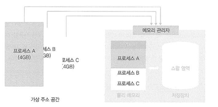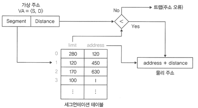 ์์ ํ๋ก์ธ์ค๊ฐ ์ฌ์ฉํ๋ ๊ฐ์ ์ฃผ์๋ฅผ ์ค์ ๋ฉ๋ชจ๋ฆฌ์ ๋ฌผ๋ฆฌ ์ฃผ์๋ก ๋ณํํ๋๋ฐ, ์ด๋ฌํ ์์