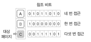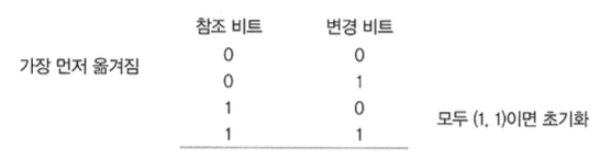 ๊ฐ ํ์ด์ง์ ์ผ์ ํฌ๊ธฐ์ ์ฐธ์กฐ ๋นํธ๋ฅผ ๋ง๋ค์ด ์ฌ์ฉํ๋ ๊ฒ์ด๋ค. ์ฐธ์กฐ ๋นํธ์ ์ด๊น๊ฐ์ 0์ด๋ฉฐ ํ์ด์ง์ ์ ๊ทผํ ๋๋ง๋ค 1๋ก ๋ฐ๋๋ค. ๋ํ, ์ฐธ์กฐ ๋นํธ๋ ์ฃผ๊ธฐ์ ์ผ๋ก ํ ์นธ์ฉ ์ค๋ฅธ์ชฝ ์ํํธ(>>) ๋๋ค.