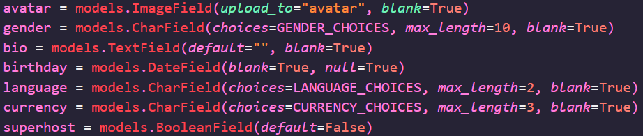 users ์ ํ๋ฆฌ์ผ์ด์ ์ models.py์ Airbnb ์ฌ์ฉ์๋ค์ ๋ฐ์ดํฐ ๋ชจ๋ธ์ ๋ด๋นํ User ํด๋์ค๋ฅผ ์์ฑํด ์ค๋ค.